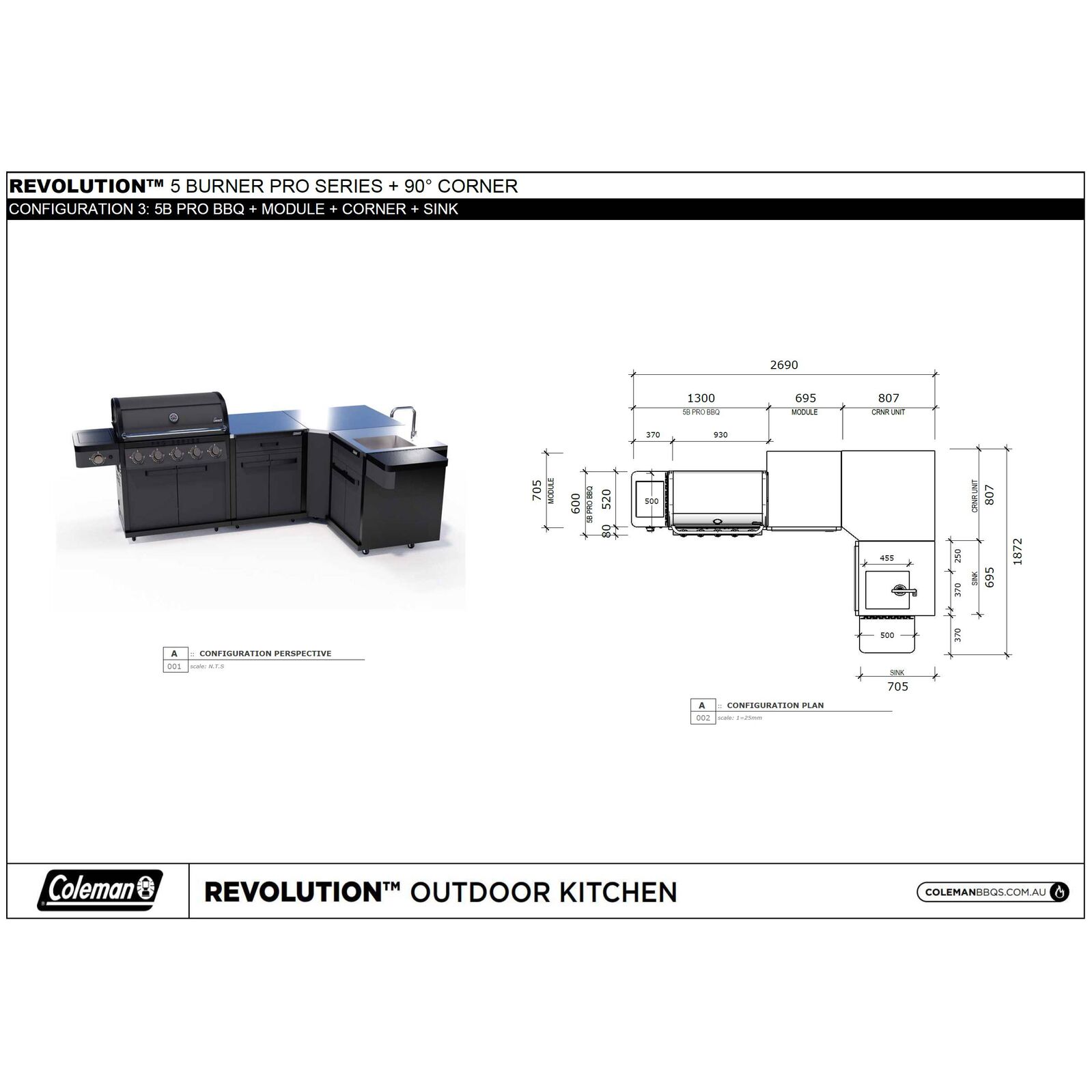 Coleman® Pro Series 5 Burner Kitchen with Storage Corner and Sink Module - Matt Black