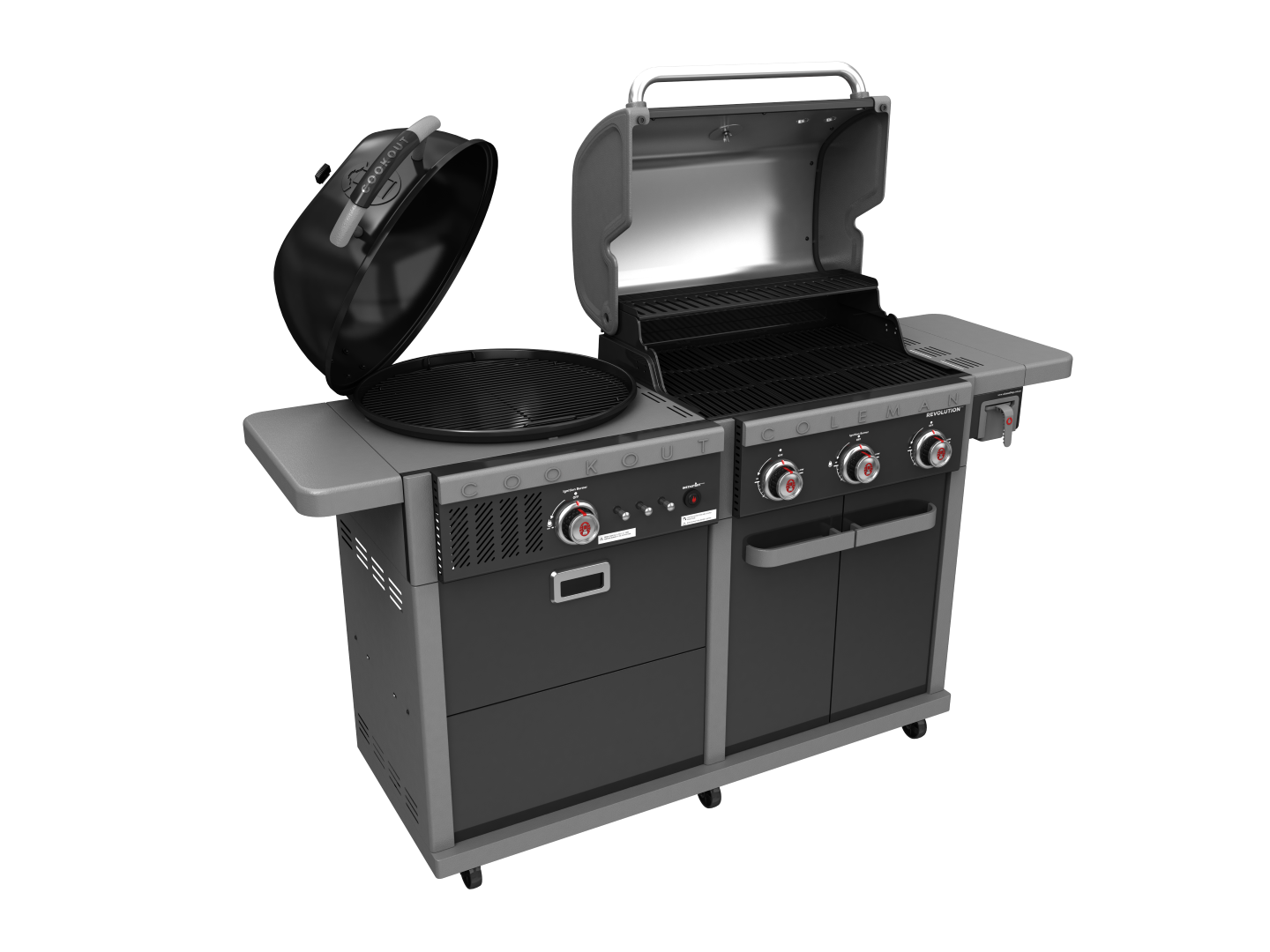 The Coleman Revolution™ Dual Fuel offers the best of both worlds. It combines a full-size charcoal kettle grill and a full-size gas grill in one fantastic cooking appliance.
