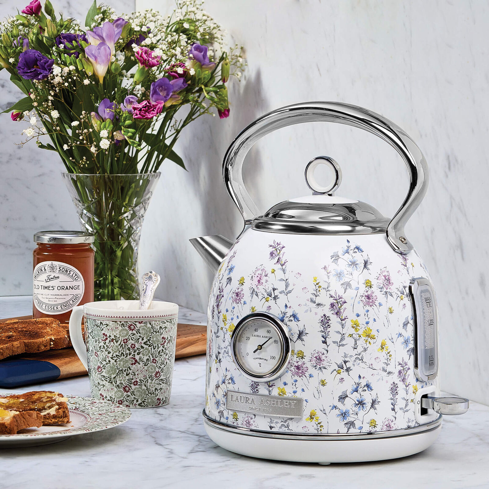 Complete your kitchen thanks to a little bit of eye-catching Laura Ashley style with this 1.7 litre kettle. The kettle features a family sized capacity capable of making up to 7 cups from a single boil. It’s easy to use and pour thanks to the wrap around handle and drip-free spout. Best of all for true connoisseurs the temperature gauge means you can make your drink when the water is just right.