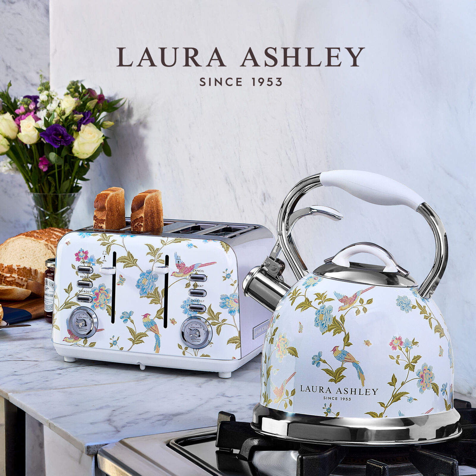 Elevate your kitchen experience with this stylish and functional Laura Ashley Stove Top Kettle and4-Slice Toaster Bundle. Perfect for those who appreciate quality, design, and efficiency in their daily routines.