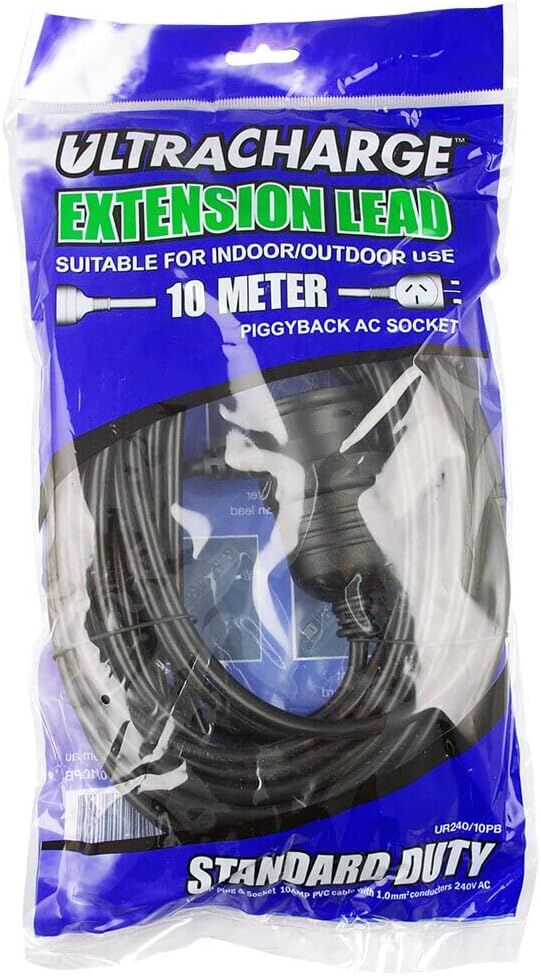 • 1x Ultracharge Extension Lead 10M With Piggy Back Plug - Black